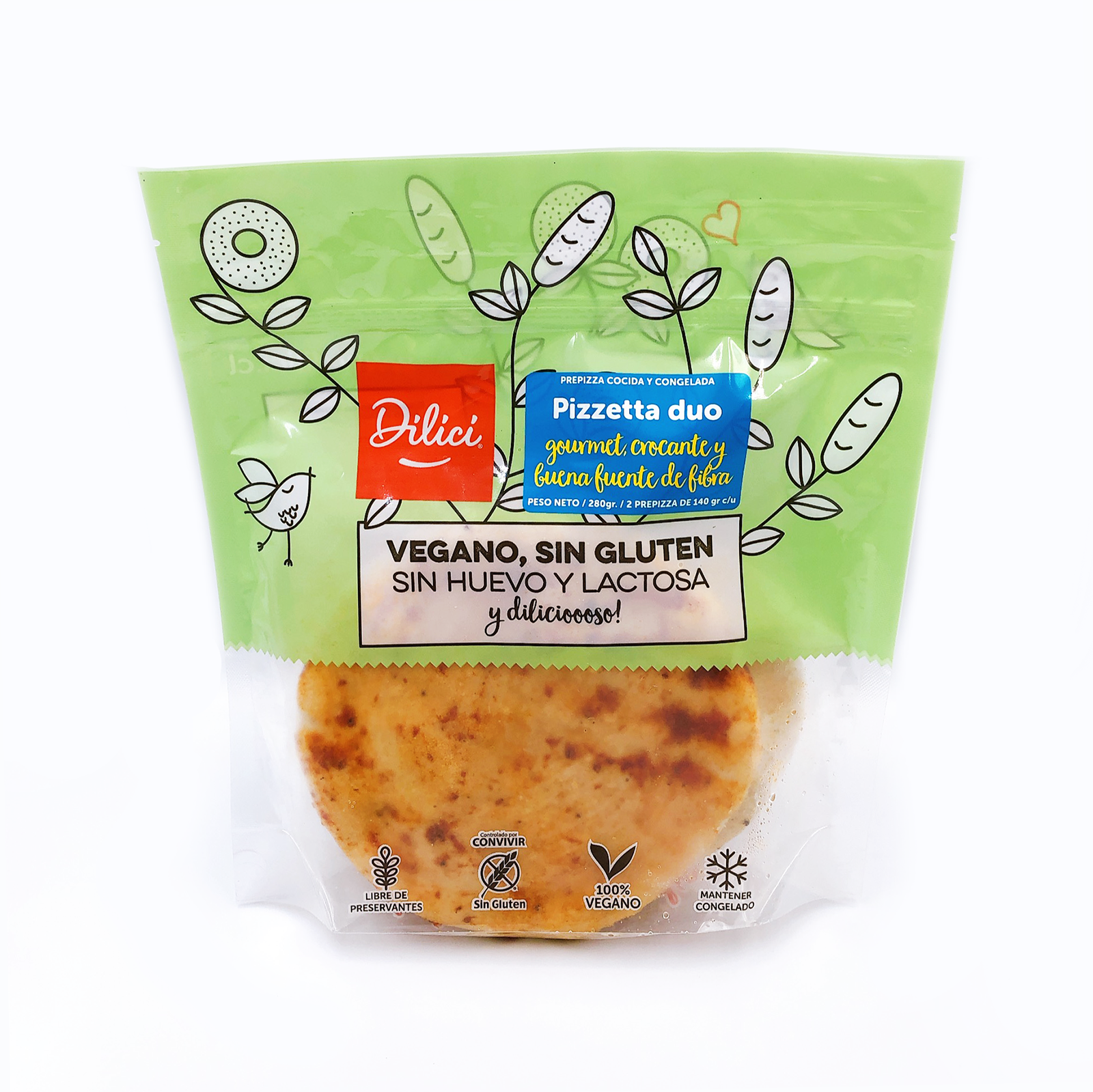 Masa Pizzeta Duo Congelada Vegana y Sin Gluten 2 un de 140 grs c/u Marca Dilici