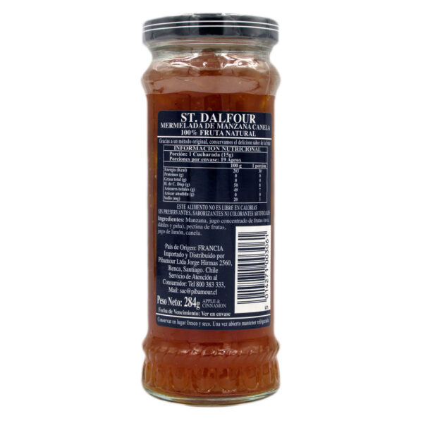 Mermelada de Manzana Canela 100% fruta sin azúcar añadida 284 grs Marca St Dalfour