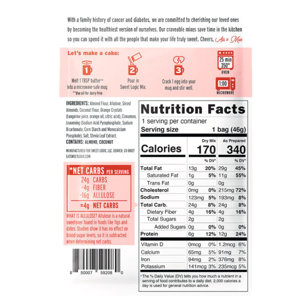 1 Un de 46 grDelicio Mug Cake con un gran sabor, Naranja y Almendras, y consistencia esponjosa- ¡Rápido, rico y sin gastar de más!