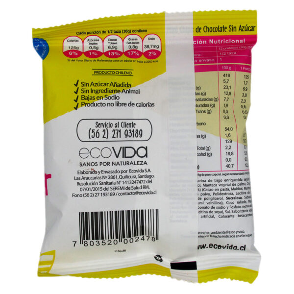 Sé el primero en valorar “Mini Galletas Chips de Chocolate Vegana Sin Azúcar 30 grs marca Eco Vida”