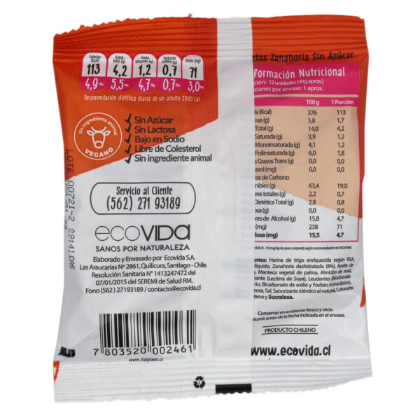 Mini Galletas de Zanahoria Sin Azúcar 30 grs marca Eco Vida
