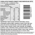 Mini Torta Naked Carrot Cake keto y sin azúcar añadida, con bizcocho de zanahoria, nueces y frosting cítrico cremoso. 130 g, solo 3,1 g de carbohidratos por porción.