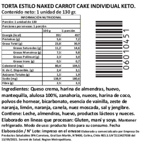 Mini Torta Neked Carrot Cake, Keto, Sin Azúcar Añadida, Tremus