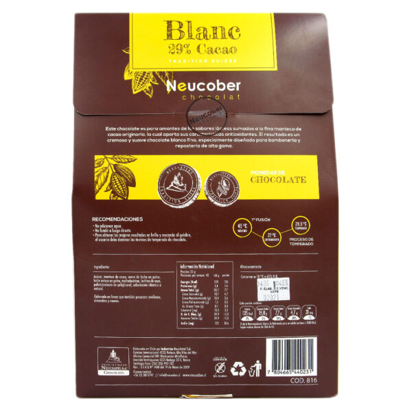 Este chocolate es para amantes de los sabores lácteos sumados a la fina manteca de cacao originaria, la cual aporta sus características antioxidantes. El resultado es un cremoso y suave chocolate blanco fino, especialmente diseñado para bombonería y repostería de alta gama.
