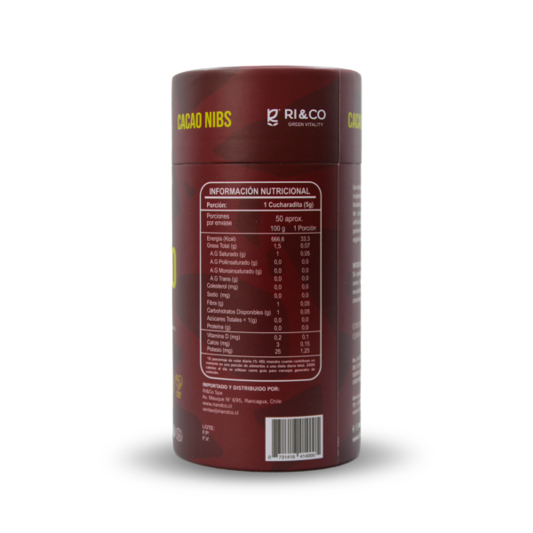 Nibs de Cacao 100% Organico sin gluten vegano 250 gr marca RI&CO