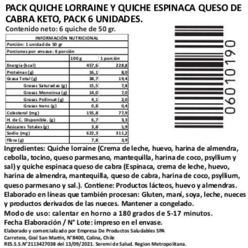 Un pack artesanal y keto que reúne dos sabores irresistibles: Quiche Lorraine y Quiche de Espinaca con Queso de Cabra.