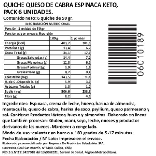 Disfruta de la deliciosa combinación de sabores con nuestro Pack de 6 Unidades de Mini Quiche de Espinaca y Queso de Cabra Keto. Perfecto para quienes buscan una opción sabrosa y saludable, cada quiche está hecho con una base nutritiva de harina de almendra y coco, aportando la textura perfecta sin carbohidratos innecesarios.