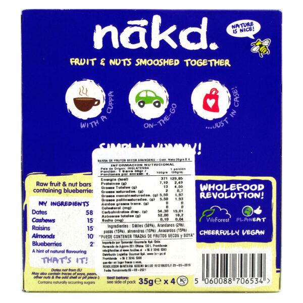 Sé el primero en valorar “Pack de 4 Barras Veganas Blueberry Muffin Sin Glúten 35 grs marca Nakd”