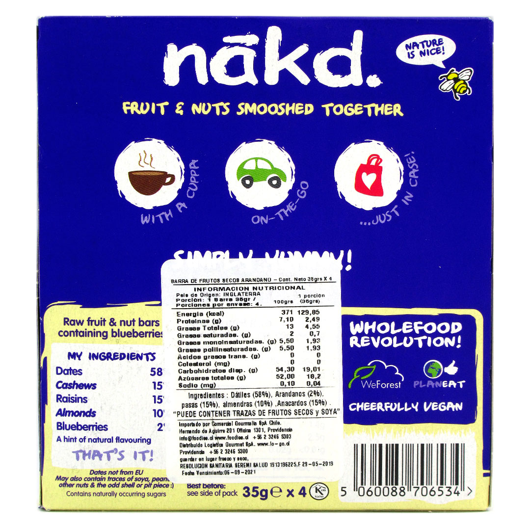 Pack de 4 Barras Veganas Blueberry Muffin Sin Glúten 35 grs marca Nakd