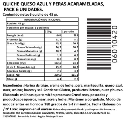 (D) Pack de 6 Unidades Quiche de Pera con Queso Azul, 270 g, Marca Tremus