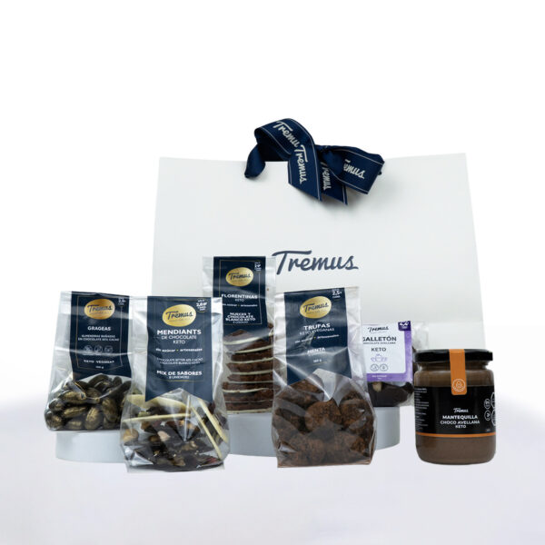 Energía festiva en formato regalo. Combina Trufas 12u, Mendiants 8u, Grageas 100 g, Florentinas 8u y Galleton 1u.