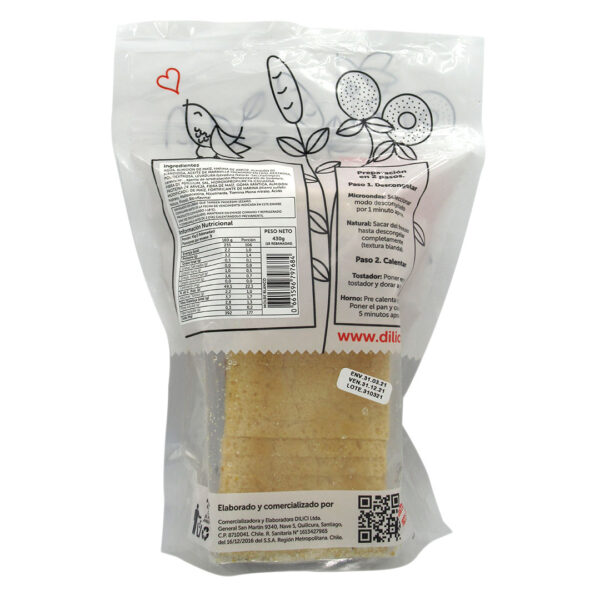 Pan de Molde Blanco Suave y Esponjoso Sin Gluten 430 grs marca Dilici