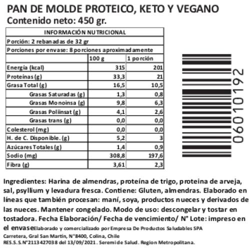 Con 21 g de proteína por porción y solo 3 g de hidratos de carbono, este pan keto es una alternativa perfecta para quienes siguen una alimentación baja en carbohidratos o alta en proteínas, manteniendo un perfil vegano y libre de colesterol.