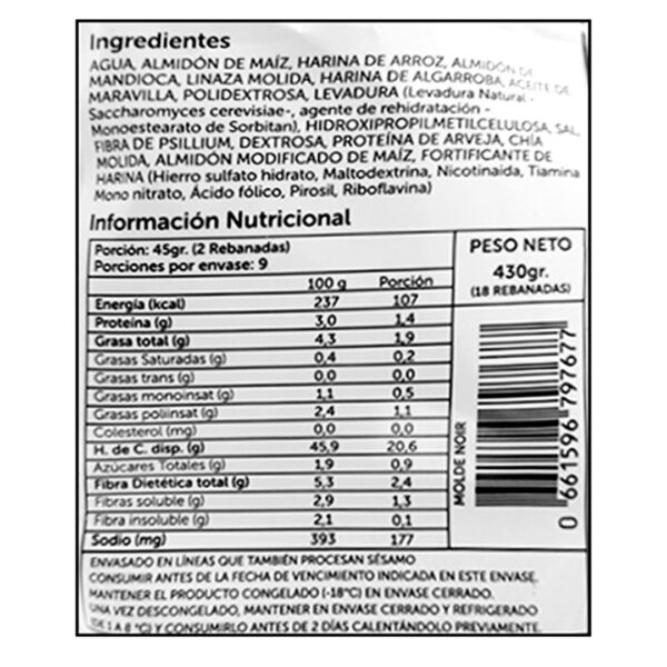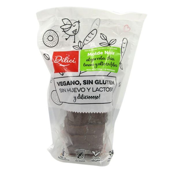 Pan de Molde Noir (Algarroba Chia y Linaza) Sin Gluten 430 grs marca Dilici