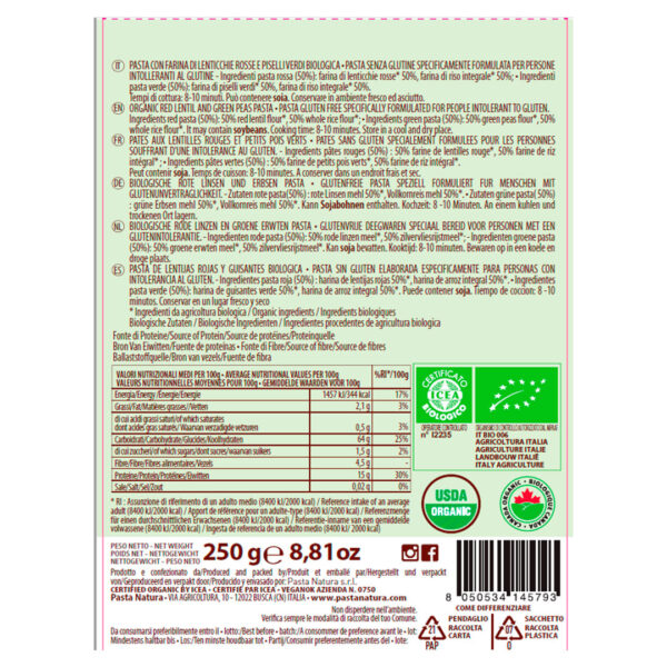 Sé el primero en valorar “Pasta de Arvejas y Lentejas Rojas en Forma de Animales, Orgánica, Sin Gluten, Vegana, 250 gr, Marca Pasta Natura”