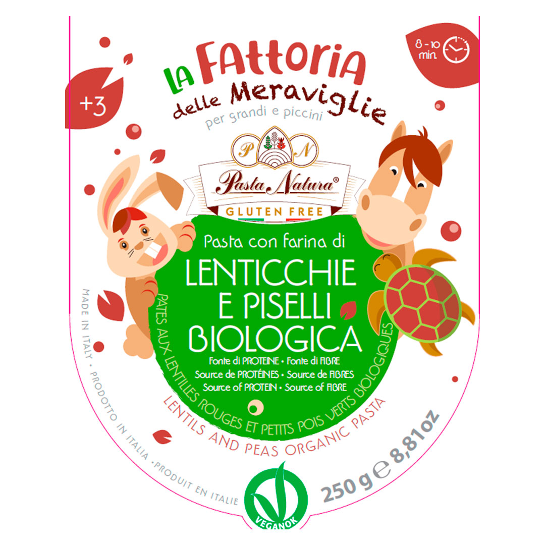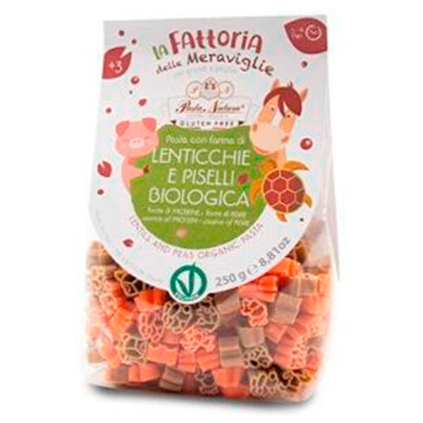 Pasta de Arvejas y Lentejas Rojas en Forma de Animales, Orgánica, Sin Gluten, Vegana, 250 gr, Marca Pasta Natura