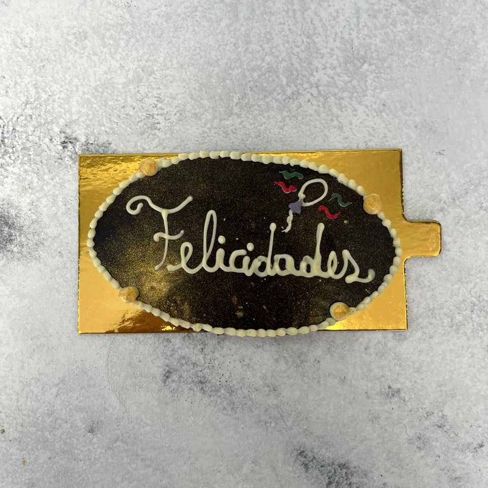 Celebra tus momentos especiales con nuestra Placa de Chocolate Artesanal, la manera perfecta de realzar tus tortas y cumpleaños.