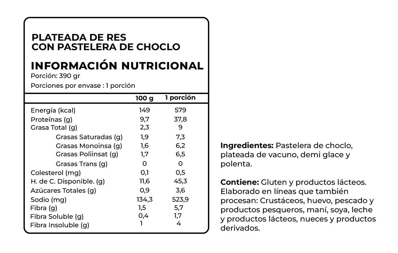 Cada porción de 390 g entrega 37,8 g de proteínas, ideal para quienes buscan un plato completo, artesanal y nutritivo, sin sacrificar el placer de una comida tradicional.