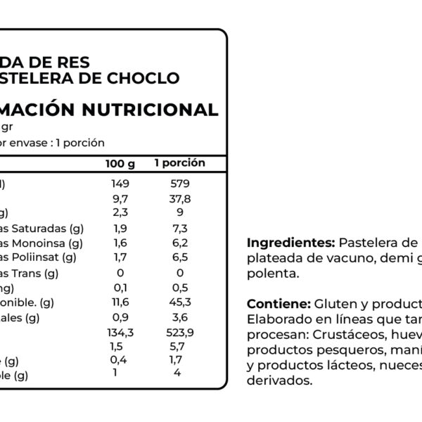 Cada porción de 390 g entrega 37,8 g de proteínas, ideal para quienes buscan un plato completo, artesanal y nutritivo, sin sacrificar el placer de una comida tradicional.