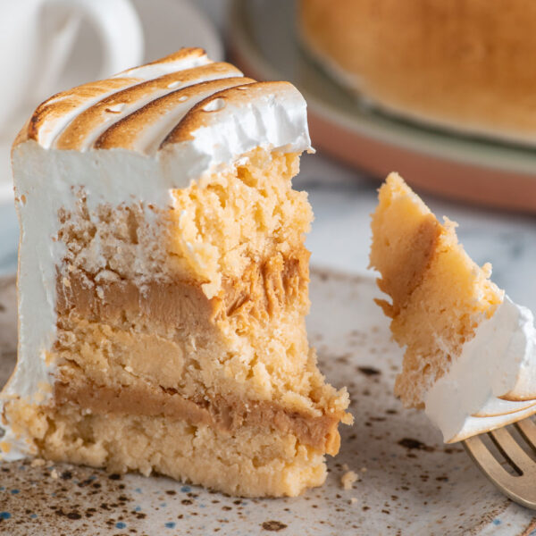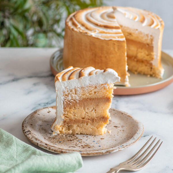 Bizcocho elaborado en base a harina de almendras, remojado en 3 leches keto, relleno con manjar artesanal y cubierto con merengue italiano. Endulzado con alulosa, y elaborado artesanalmente.