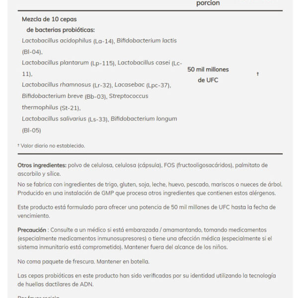 1 valoración en Probiotic-10 – 50 Billones 50 cápsulas veg. marca Now