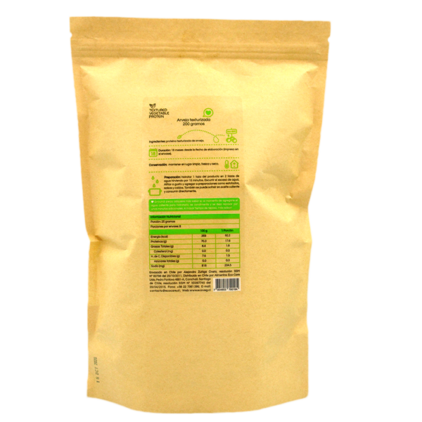 Proteína con textura a base de arveja en estado completamente puro, rica en proteínas baja en grasas y carbohidratos.