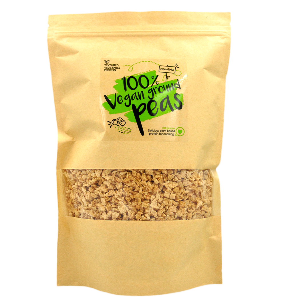 Proteína con textura a base de arveja en estado completamente puro, rica en proteínas baja en grasas y carbohidratos.
