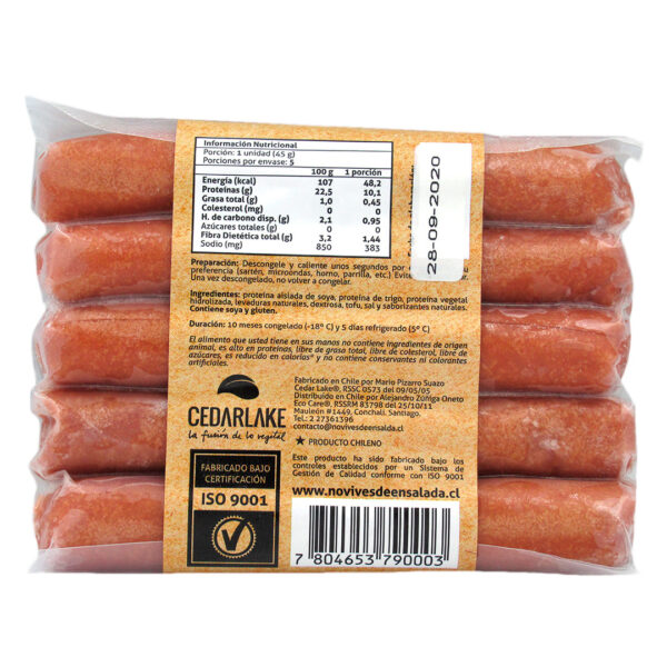 Sé el primero en valorar “Salchichas Vegetales Tradicional 5 unidades Marca No Vives de Ensalada”