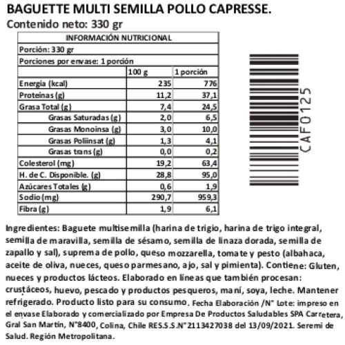 Baguette Multicereal Pollo Caprese, 330 g, Tremus