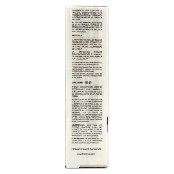 Emulsión, ideal para tratar la híper pigmentaciones (manchas oscuras), manchas de acné, sol, laser, edad entre otras. Mejora la luminosidad de la piel y unifica el tono.