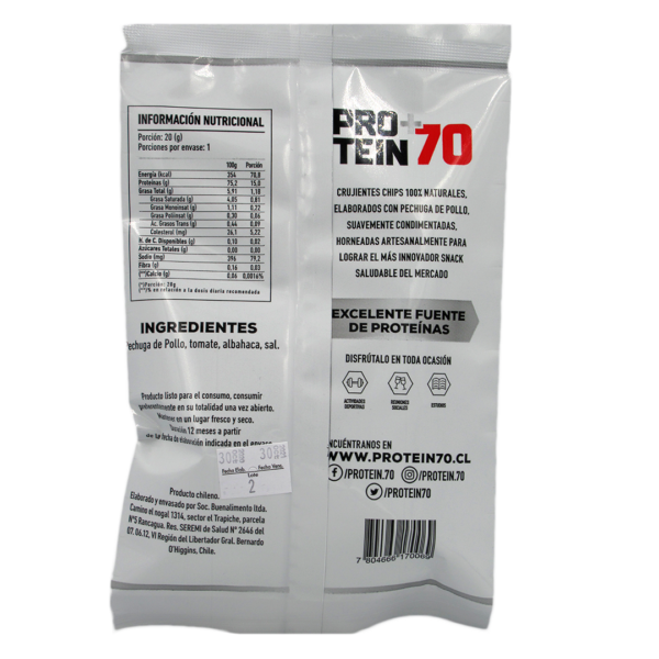 Crujientes chips 100% naturales, elaborados con pechuga de pollo, suavemente condimentadas, horneadas artesanalmente para lograr el más innovador snack saludable del mercado.