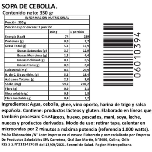 La Sopa de Cebolla Artesanal Tremus (350 cc) es una preparación casera y reconfortante, elaborada con cebolla caramelizada en ghee, salsa española y un toque de Oporto. Buena fuente de fibra, ofrece un sabor intenso y natural con la calidad artesanal Tremus.
