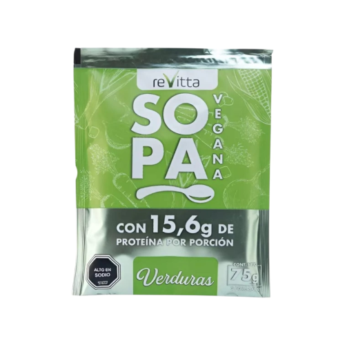 Sopa Proteica Vegana, 15,6 g Prot. por Porción Verduras 75 gr Marca Revitta