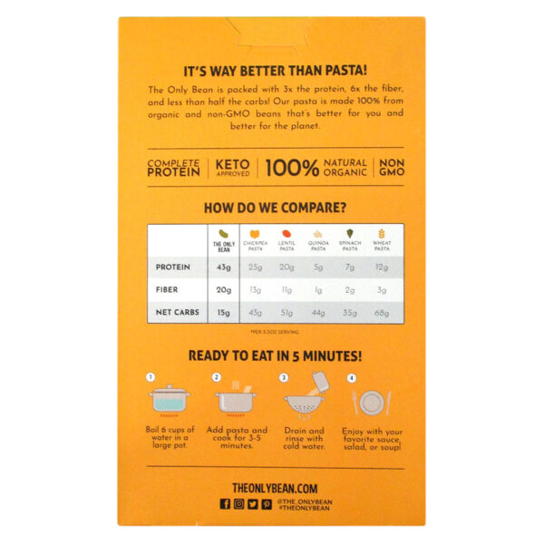 The Only Bean es una pasta especialmente formulada para Veganos, o intolerantes al Gluten, y quienes siguen una dieta Low Carb.