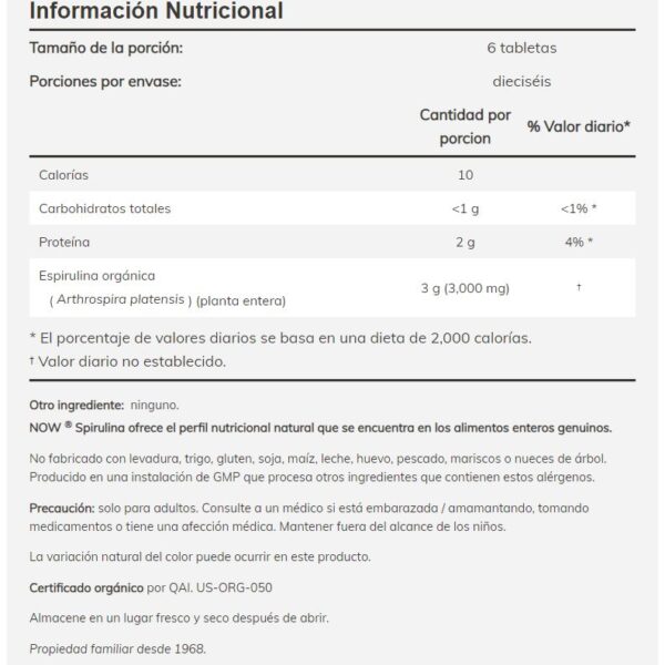 Sé el primero en valorar “Spirulina Orgánica 500 mg 100 tabletas marca Now”