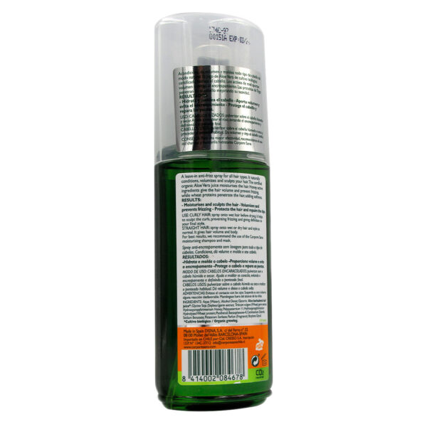 Antiencrespamiento y voluminizador. El jugo de Aloe Vera aporta hidratación al cabello, mientras que los activos de Miel evitan el encrespamiento. Protege y repara las puntas del cabello.