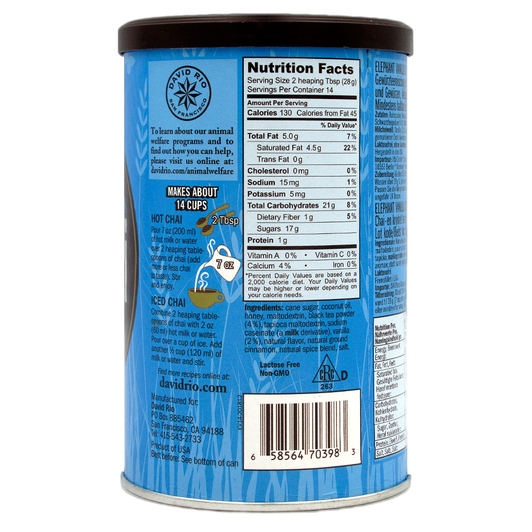 Té Chai Elephant Vanilla 398 gr Marca David Rio