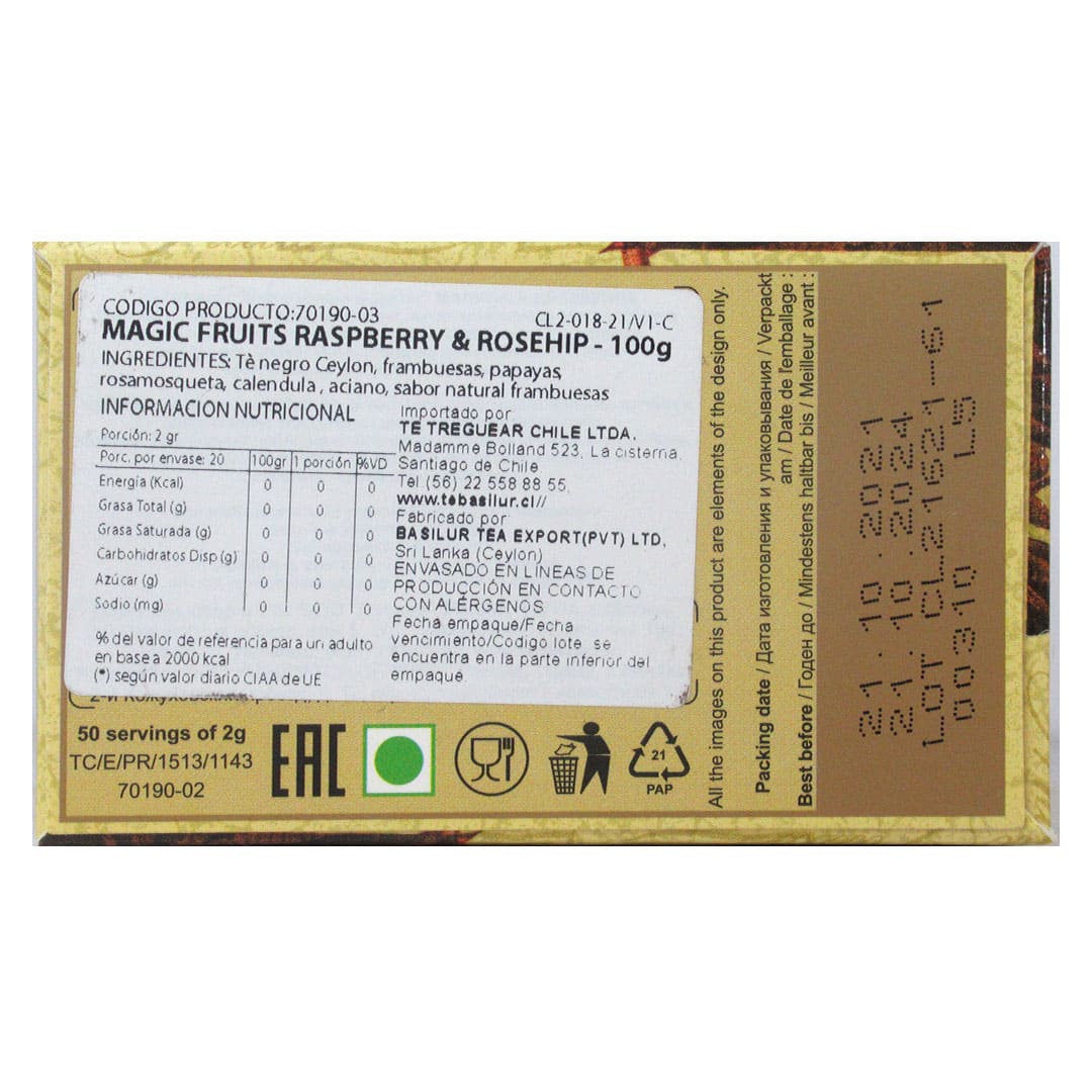 Te Negro Ceylan Frambuesa & Rosa Mosqueta, 100g, Marca Basilur