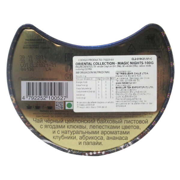 100 mlLa composición de frutas deleitará su paladar y calmará sus sentidos. Magic Nights ha sido líder entre todos los tés de la marca Basilur Tea durante muchos años y es la mezcla más elegida por los amantes del buen té premium. ¡Se lo recomendamos a todos!