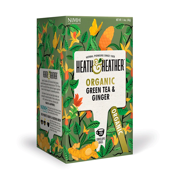 Té Verde Orgánico con Jengibre, 20 bolsas, marca Health & Heather