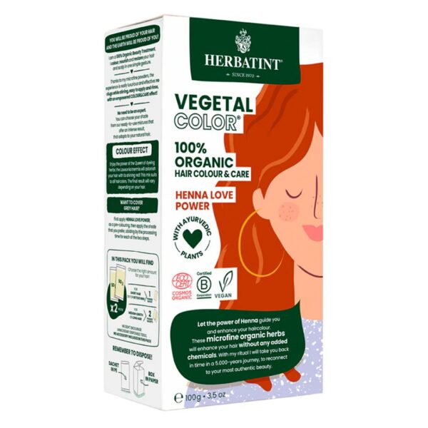 Tinte en Polvo Organico 100 % Vegetal Henna Love Vegano 100 g Marca Herbatint