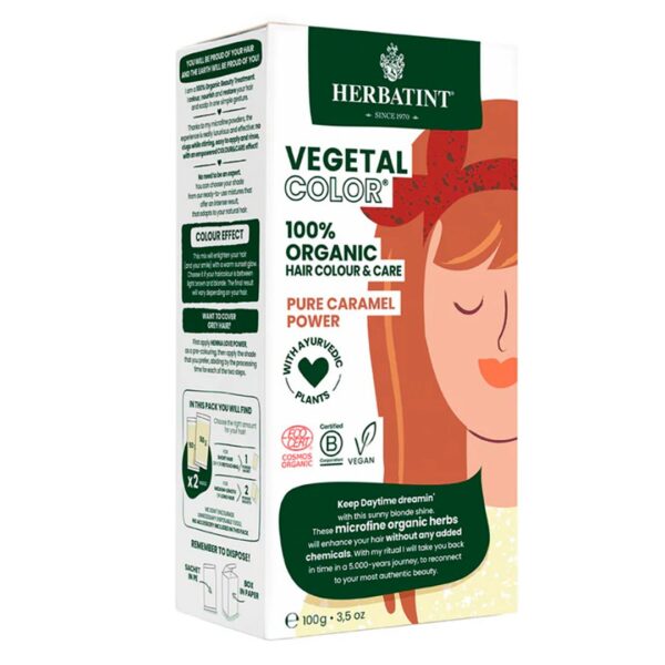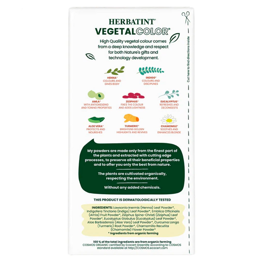 Herbatint Vegetal Color es un producto de acción dual, tinte y cuidado para el cabello, 100 % natural y orgánico ,que combina hierbas para teñir de alta calidad con el poder de los antiguos polvos de hojas ayurvédicas.