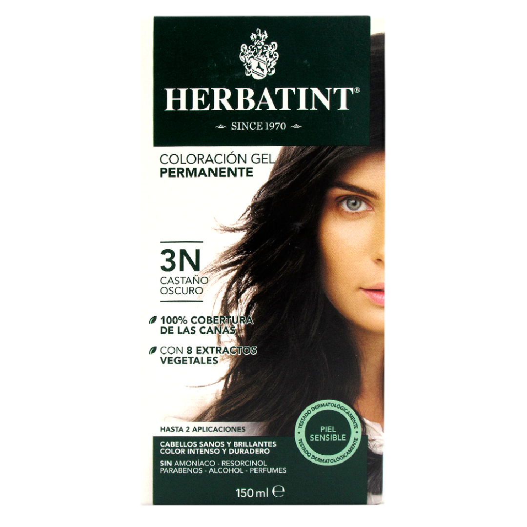 Tinte Gel Vegetal 3N Cabello Castaño Oscurosin amoniaco150 ml marca Herbatint