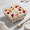 El uso de ingredientes seleccionados y una elaboración cuidadosa dan como resultado una torta equilibrada y de sabor profundo, que resalta el cacao y la fruta en una versión sin azúcar añadida, endulzada exclusivamente con alulosa 100%.