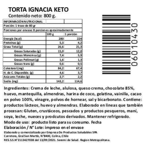 Con solo 3,7 g de hidratos de carbono por porción, la Torta Ignacia Tremus es una experiencia keto única: elegante, equilibrada y sin azúcar añadida, ideal para los amantes del chocolate artesanal.