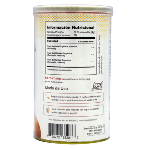 Triphala Sin Gluten Vegana Sin GMO Organica 200 gr Marca Konun