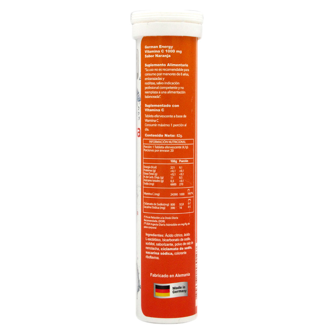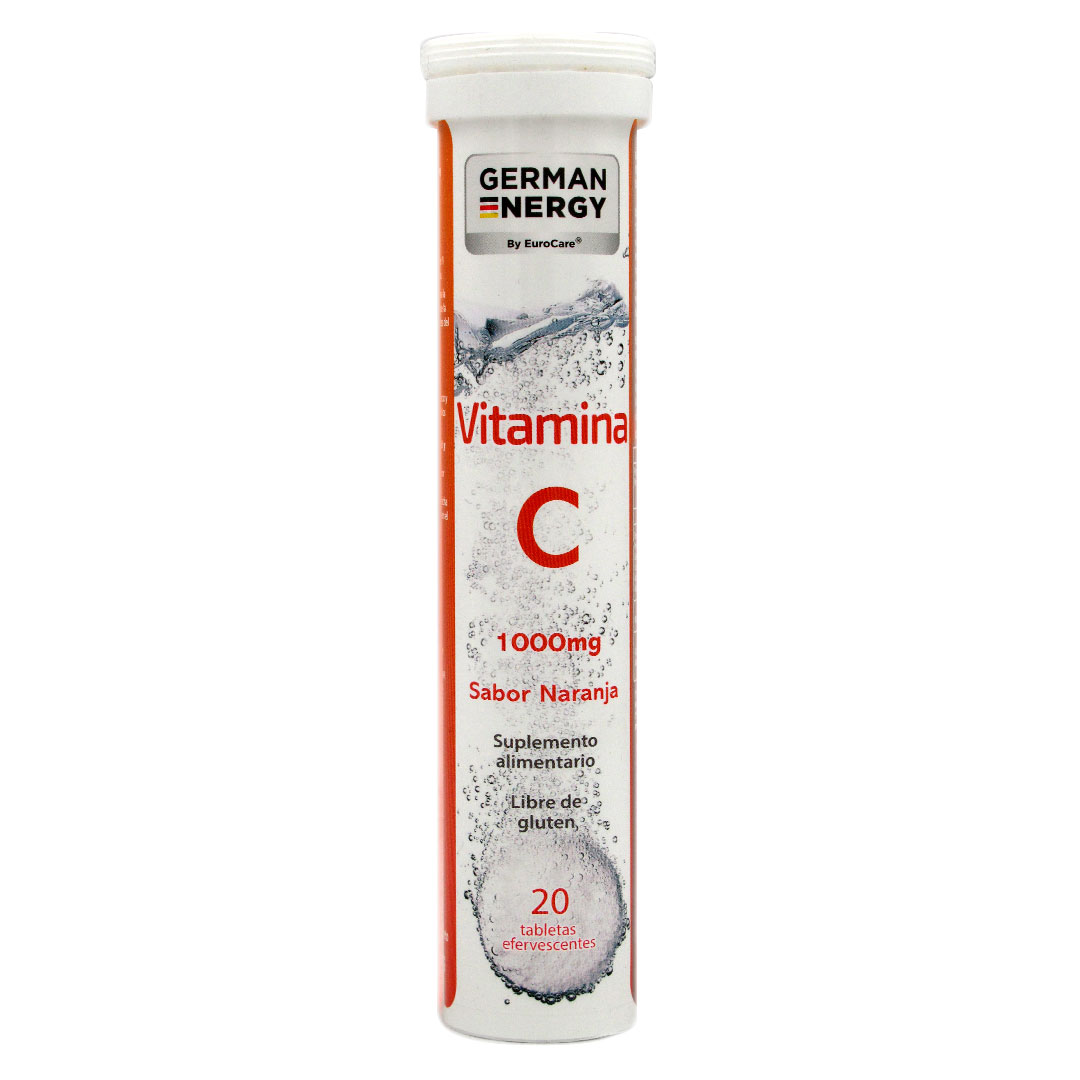 Vitamina C 1000 mg Sabor Naranja Sin Gluten 20 Tabletas Esfervescentes Marca German Energy