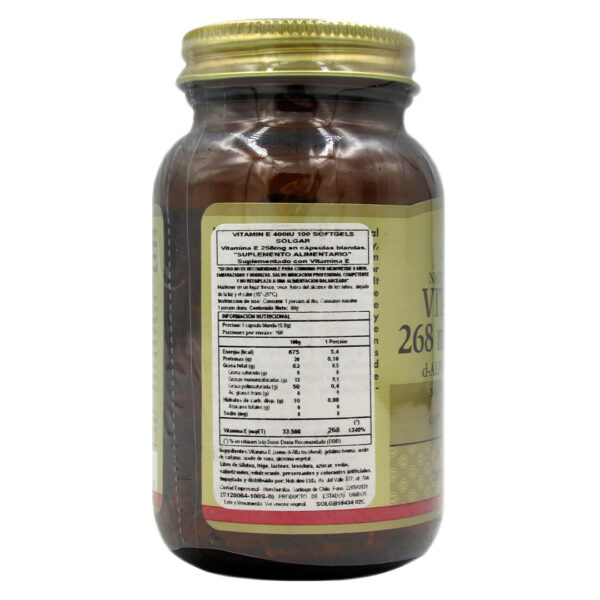 Vitamina E 400 IU 100 cápsulas Marca Solgar