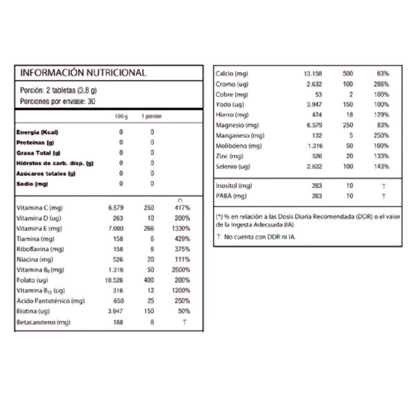 "Su uso no es recomendable para consumo en menores de 8 años, embarazadas y nodrizas, salvo indicación profesional competente y no reemplaza una alimentación balanceada"