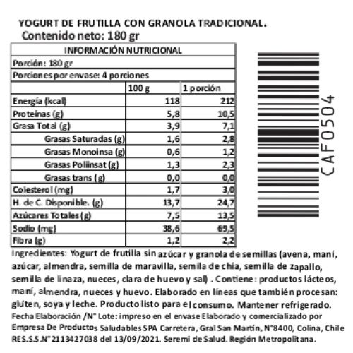 - Yogurth de frutilla – base cremosa y proteica, con sabor suave y natural.